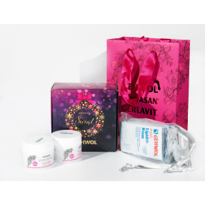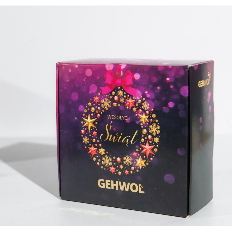 Zestaw prezentowy jest zapakowany w elegancką świąteczną torebkę z napisem Gehwol.