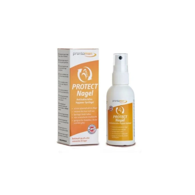 PRONTOMAN Protect Nagel żel w sprayu 50 ml to preparat nowej generacji, stworzony w oparciu o czysto mineralną formułę ECA – innowacyjną technologię, która skutecznie chroni przed drobnoustrojami, nie powodując podrażnień ani przesuszenia. Spray przylega do płytki paznokcia, tworząc niewidoczną barierę ochronną, która wspiera regenerację skóry i paznokci.